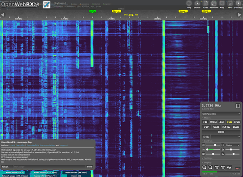 Lokal an meinem QTH betreibe ich auch einen WebSDR, der aus dem Internet erreichbar ist: http://217.154.86.240:8073/